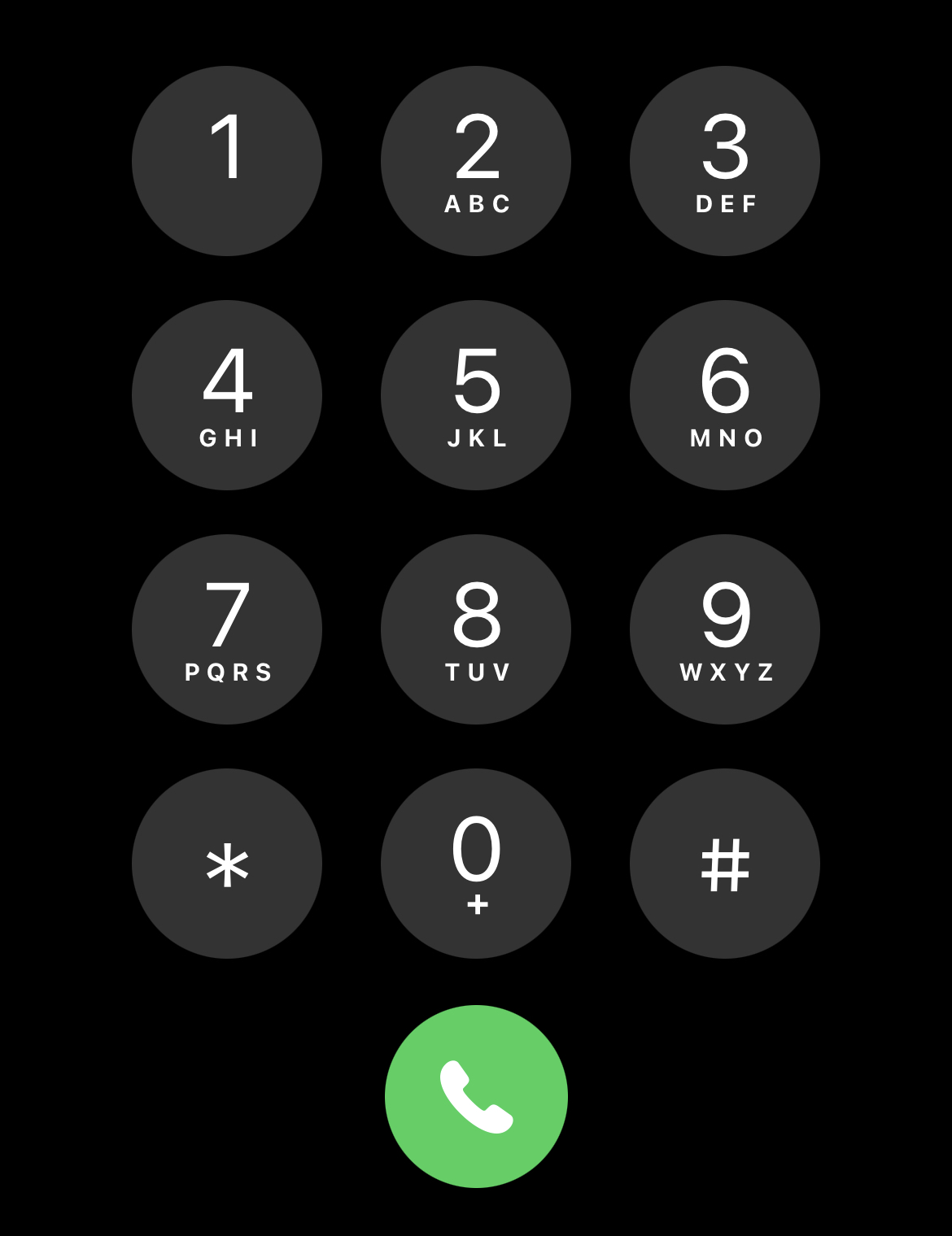 스마트폰 전화 키패드의 각 칸에 다음과 같이 숫자들이 적혀 있습니다.