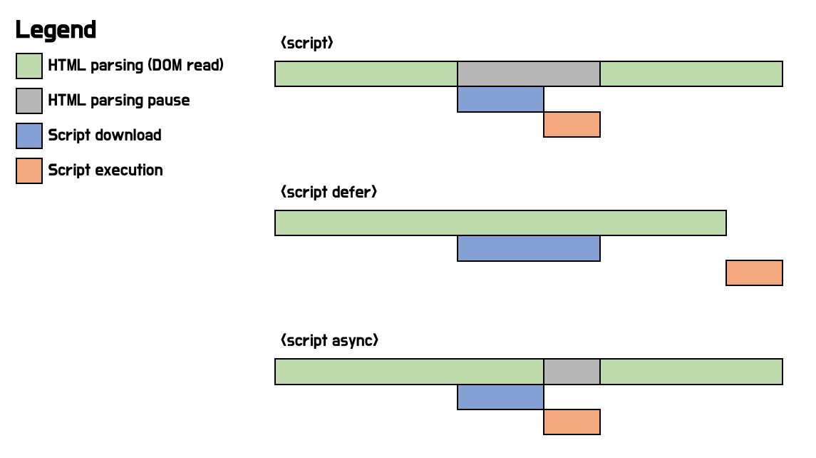 - 페이지 위쪽에 용량이 큰 스크립트가 있는 경우, 스크립트로 인해 페이지 로딩이 느려지게 된다. (정확히는 로딩이 막힌다)